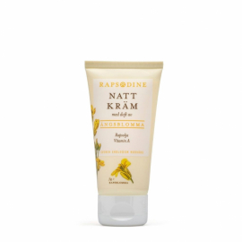 Denna nattkräm är utformad för att ge huden riklig näring medan den återhämtar sig. Den krämiga texturen smälter in utan att kännas tung och lämnar huden mjuk, fyllig och behagligt återfuktad. Basen av ekologisk rapsolja bidrar med naturligt vitamin E och omega-fettsyror som stärker hudbarriären, medan vitamin A verkar för att mjuka upp och jämna ut hudens struktur. Doften av ängsblomma ger en stilla, mjuk avslutning som gör kvällsrutinen extra rofylld. Passar alla hudtyper, särskilt torr eller mogen hy som söker en mer omslutande nattvård.