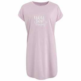Bambu har naturliga egenskaper som hjälper materialet att hålla sig fräscht längre, samtidigt som det håller huden sval. Den rosa tonen och trycket på framsidan ger nattlinnet ett mjukt och enkelt uttryck för natten.