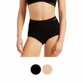 Den här modellen från Boody är skapad för dig som söker en trygg, täckande passform. Den högre midjan följer kroppens naturliga linje och ligger mjukt mot huden utan att strama. Den lägre benringningen framtill och baktill ger en mer omslutande känsla som stillar varje rörelse och minskar risken för att plagget skaver eller förflyttar sig. Bambuviskosens silkeslena textur anpassar sig efter kroppen och ger en lugn, hudnära upplevelse genom hela dagen. Den breda, ribbstickade linningen ger ett mjukt men stabilt stöd, och den bakre kil-sömmen är placerad för att minimera friktion och ge en jämn, smidig känsla även under rörelse.