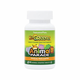 Kid Greenz, 90 tuggtabletter från Animal Parade är ett kosttillskott för barn i form av tuggtabletter. Produkten innehåller en grönsaksblandning med ingredienser från grönsaker och alger.