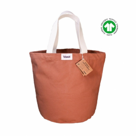 Den terrakottafärgade cylinderformade tygkassen från VENGA är en stilfull och hållbar vardagsväska tillverkad i tjock ekologisk bomullscanvas (520 g/m²). En naturligt vacker färg möter genomtänkt funktion – perfekt för shopping, jobb, fritid eller resa.
