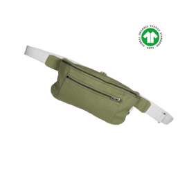 Trendig skogsgrön midjeväska i 100 % ekologisk bomull från VENGA. Slitstark canvas, smarta fickor och certifierad hållbar kvalitet.