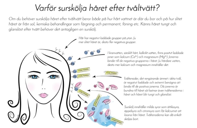 Surskölj är en favorit! En infusion av hibiskus eller en blandning av äppelcidervinäger och vatten kan neutralisera kalkavlagringar och göra håret mjukt. Om du behöver surskölj eller inte har också mycket att göra med om ditt vatten är hårt eller mjukt. Hårt vatten innehåller mineraler som kan reagera med tvålen och lämna en hinna på håret, vilket kan göra det strävt eller tungt. En surskölj hjälper till att lösa upp dessa mineralrester. Om du föredrar en mer traditionell metod eller gillar känslan av balsam så välj ett balsam fritt från silikoner.